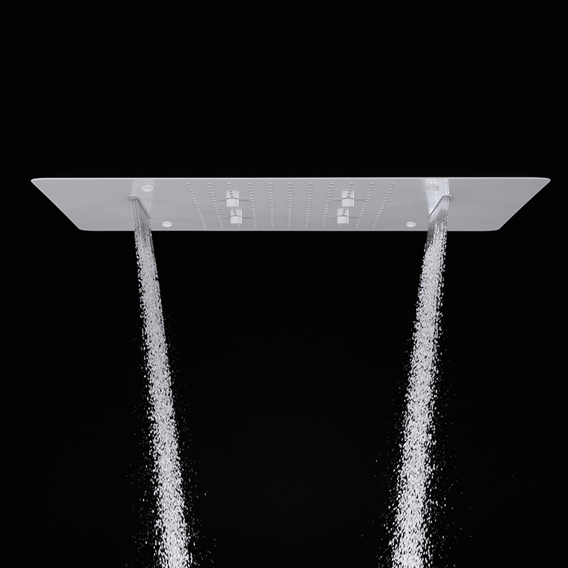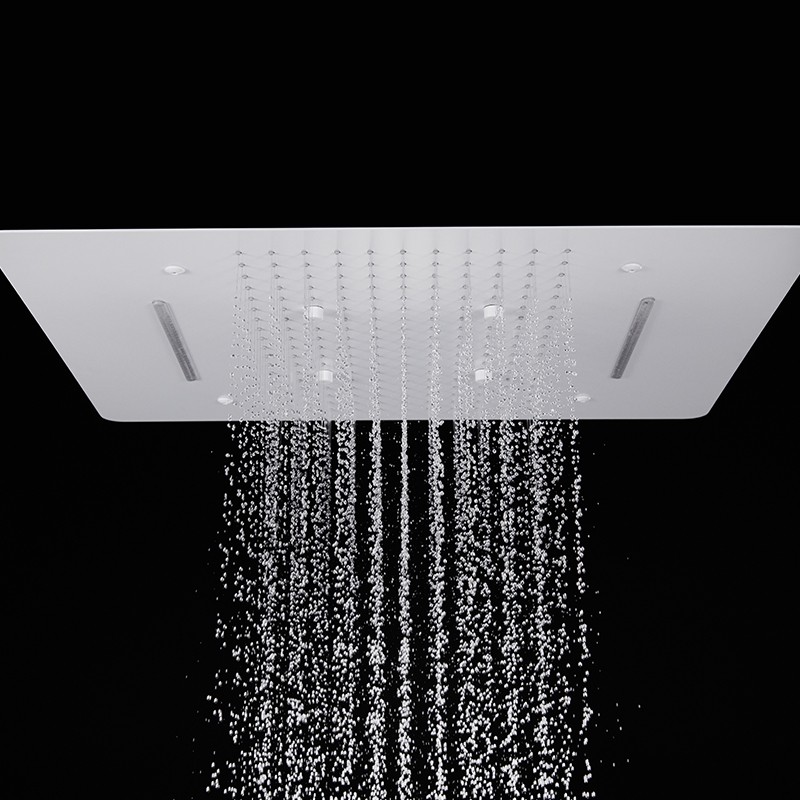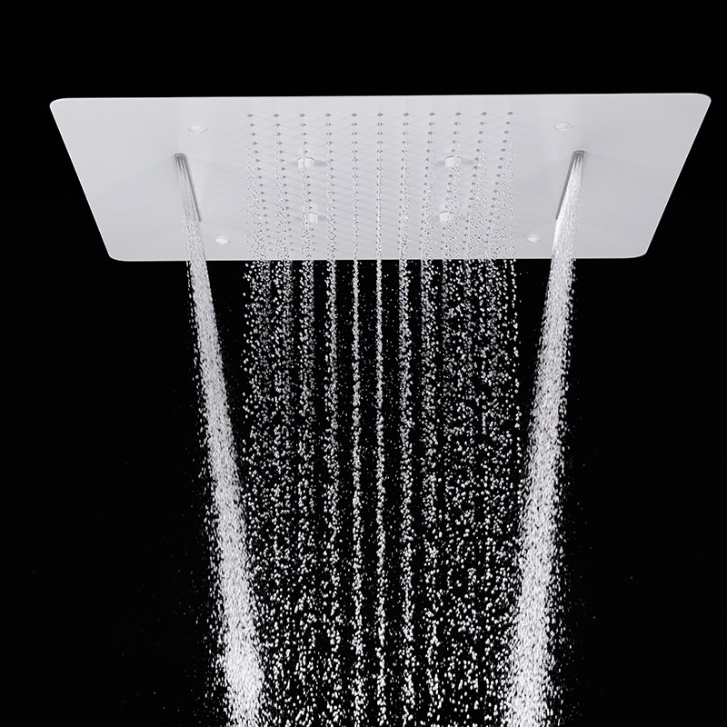 The 590×480mm canopy overhead shower features three modes: rain, waterfall, and mist. It provides full-body coverage with generous amounts of water for an immersive shower experience.